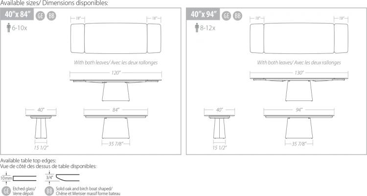 - Includes two 18” solid birch or solid oak storable leaves.